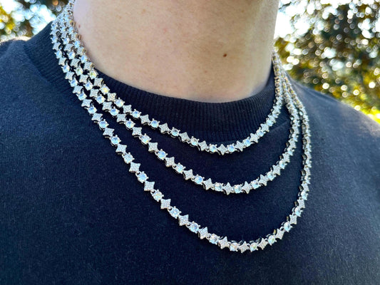 Silver Iced Out Star Tennis Chain - 5mm CZ 925 Silver Tennis Chain Necklace